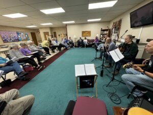Join us in the lounge the first Friday of each month for a joyous, uplifting, and very fun evening of singing. Being able to carry a tune IS NOT required. Just the desire to be part of a community activity that will make you feel oh so happy. We sing out of a songbook with lyrics and chords, so singers and musicians are welcome